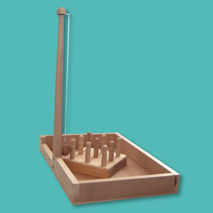 - 1 caisse en hêtre de 65cm x 45cm, mât et boule en hêtre