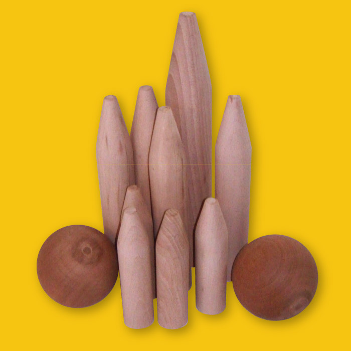 - 9 quilles en hêtre de 15 à 32 cm