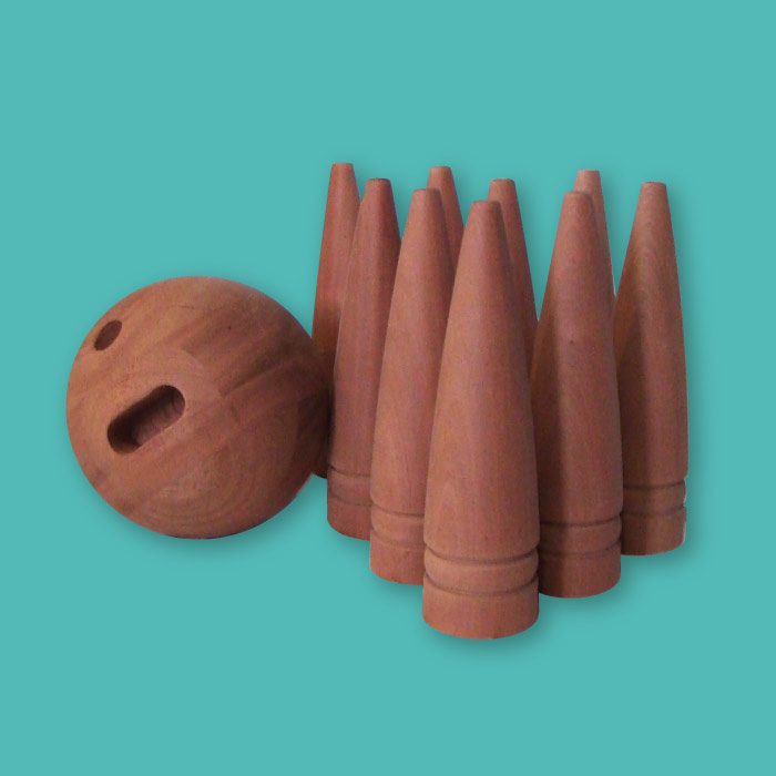 - 1 boule ø 23cm en hêtre avec trous à mortaise pour les doigts